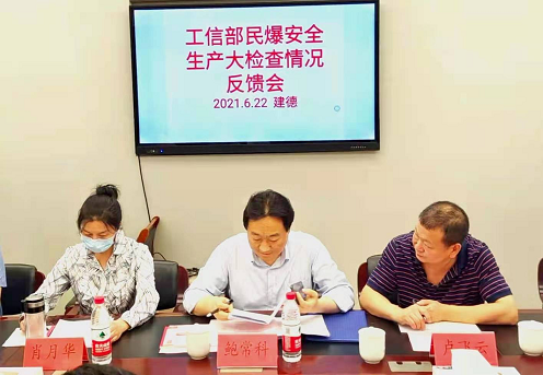 為加強(qiáng)安全生產(chǎn),強(qiáng)化企業(yè)主體責(zé)任落實(shí),以良好的安全環(huán)境迎接建黨100周年,6月22日,工信部安全生產(chǎn)司民爆處處長(zhǎng)鮑??啤⒍?jí)巡視員肖月華及專家組一行到我司下屬京安科技公司開(kāi)展“雙隨機(jī)一公開(kāi)”執(zhí)法檢查。省委軍民融合辦副主任盧飛云、安全監(jiān)管處處長(zhǎng)周超,杭州市委軍民融合辦二級(jí)巡視員段長(zhǎng)林,建德市副市長(zhǎng)、公安局長(zhǎng)王偉及建德市相關(guān)職能部門(mén)負(fù)責(zé)人陪同檢查。新聯(lián)公司總經(jīng)理馬福民、安全技術(shù)部經(jīng)理劉忠,京安爆破公司執(zhí)行董事陳曉紅、副總經(jīng)理辛振坤、汪興國(guó)一同參加檢查。