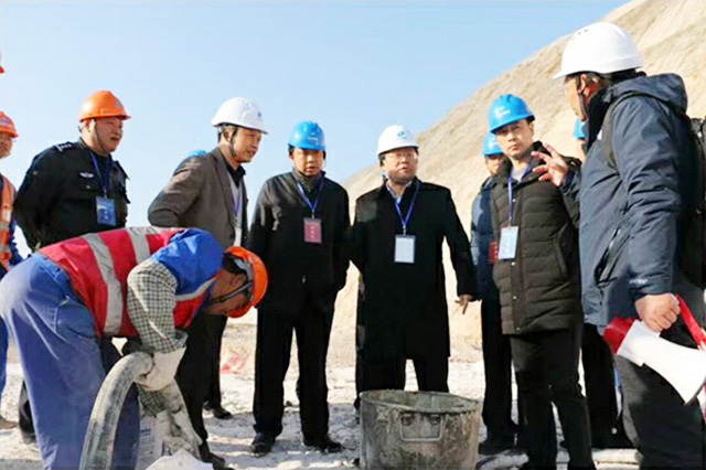 公安部三局馬維亞副局長、浙江省公安廳金伯中副廳長(右三)共同出席在項目部會議室召開的現場混裝炸藥觀摩座談會