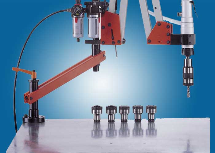 氣動攻絲機較重的工作物不需要定位裝置或移動,裝加萬向頭可輕松搞定。定位迅速快和較高的切削速度,增加生產量,筒夾帶過載保護裝置,絲攻損傷較少,螺牙精度高。